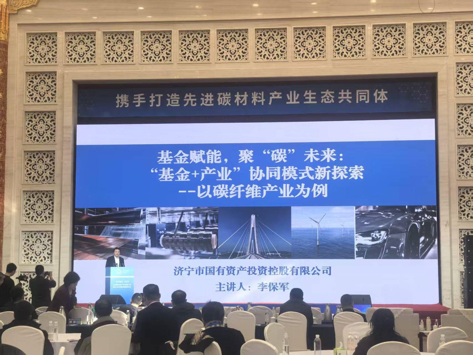 会上,李保军发表《基金赋能,聚“碳”未来:“基金+产业”协同模式新探索——以碳纤维产业为例》主题演讲,结合乐竞平台实践,从三大维度分享产融协同赋能碳材料产业的路径。一是围绕济宁市“232”产业集群,打造了总规模181亿的基金矩阵,构建“投前研判、投中管理、投后赋能”全流程体系,累计投资136个项目,助力13家企业上市、并购。二是通过组建先进碳材料工程技术研究院、设立先进碳材料专项基金等模式,成功投资益大新材、恒圣石墨等标杆企业,为产业发展提供研发到投产全链条支撑。三是以夯实产融协同根基、拓展区域协同维度、强化产业研究三大方向为重点,挖掘新材料领域投资机会,精准对接优质技术与项目资源。