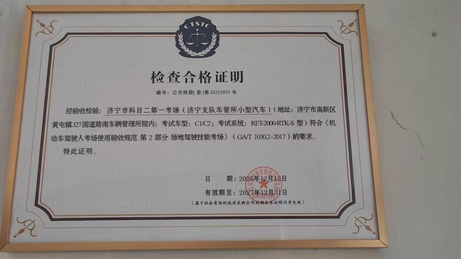 专家组严格对照相关行业验收标准,对交服公司七处考场的场地布局、安全防护设施,考试系统、人员资质、管理制度与应急预案等管理与服务进行了详尽的现场检测、全面的功能测试及严谨的资料审核。专家组一致认为,交服公司在场地设施、考试系统、监督管理等各方面,均达到了国家及行业相关标准要求,对交服公司在考场建设中体现出的前瞻性规划、高质量投入和规范化管理给予了高度评价,并向交服公司正式颁发了检验合格证明。